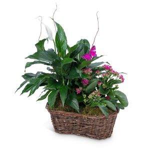 Harmony Basket with Butterflies features a mix of low-maintenance, beautiful plants, along with a touch of curly willow and a beautiful butterfly. We recommend adding a plant or mixed basket planter to every room in the house, so place your order today for this stylish favorite! Harmony Basket with Butterflies is an ideal gift for sympathy, get well wishes, or just because.