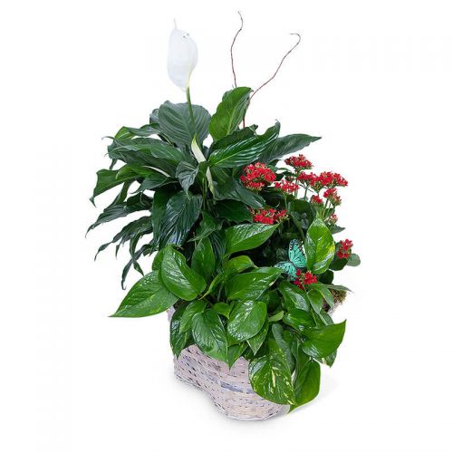Studies have proven that having plants in your home boost your mood and your health. Send your love with our Verdant Basket! This low-maintenance beauty features a Kalanchoe, Pothos, and a Peace Lily Plant, nestled together in a large basket. This gift is both easy to care for, decorative, and is also great for purifying the air, so place your order today for this stylish favorite!